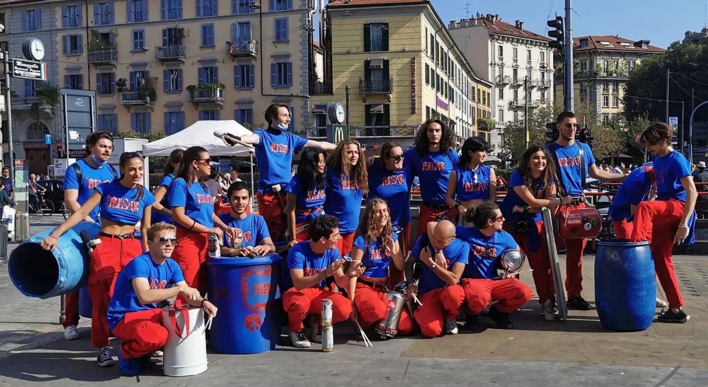 “Pulsar” è un viaggio musicale incentrato sulla percussione, frutto del lavoro condotto da Diego Iacopini presso il Centro Popolare Autogestito di Via Villamagna con un gruppo di quindici studenti del Liceo Musicale di Firenze. Bidoni, secchi, lamiere, bambù… ogni materiale, ogni scarto della società del consumo può assurgere a nuova vita se adeguatamente percosso! Ecco perché “Pulsar” si definisce una Eco-Band.